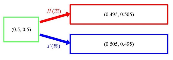 ところで、仮にB君が「パーだけを出す」と確固たる信念をもって行動するとして、A君はどうやってそれを知ることになるのだろう。実際には、B君がパーをよく出すということはA君も知っていることが多い。つまり、このときA君は、B君の混合戦略の混合比率が1/3ずつではなく、パーにやや重きを置いたもの、例えば確率分布(1/4,1/4,1/2)であることを知っていることになる。こうした確率が存在することは主観確率の理論で取り扱われる。