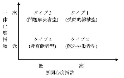 このようにみてくると、これまで「体温」として単にその大きさのみに関心を払ってきた個人の変化性向にも、実は、発揮されやすい分野や向けられている方向といった特性もありそうである。そこで、変化性向の大きさや量だけではなく、その内容や質まで含めて、組織のロジックとの関係を考えてみよう。
