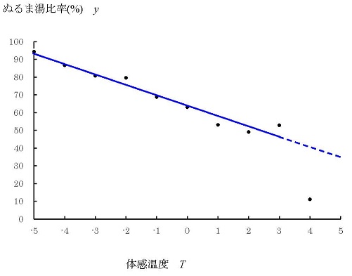 実は、ここで用いる体感温度算出式は、システム温と体温が「同一単位」で測定されているということを暗黙のうちに前提としているが、この前提については、章末付録において、多変量解析によるデータの分析によって、吟味が行われることになる。興味のある読者は章末付録を読むとわかるが、多変量解析を用いた吟味の結果、こうした前提が置いてあっても、実際上は問題がないということがわかっている。そこでここでは、調査データを基にして、この体感温度仮説を検証することを考えてみよう。